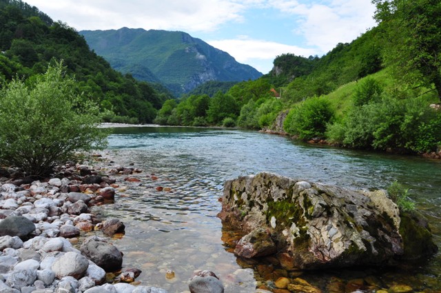 Zusammenfluss von Mrtvica und Morača (von links)