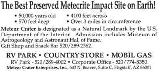 Meteor Crater unweit der I-40. Der Krater hat einen Durchmesser von 1200 und eine Tiefe von 180 Meter. Er entstand durch einen Meteoriteneinschlag vor ungefähr 50.000 Jahren. Es ist ein imposantes Loch in der Weite von Arizona. Ansonsten gibt es nicht sehr viel zu sehen und so fahren wir nach einem kurzen Aufenthalt bei einer Ziegelwand, die sozusagen ein Fenster in die Landschaft darstellt, zum Nachtquartier weiter.