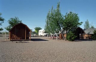 Bei Holbrook finden wir einen Campingplatz, auf dem wir erstmals keine Zelte aufstellen, sondern uns eine Hütte mieten. Grund dafür ist der starke Wind, der über die Wüste bläst. Gleich nebenan befindet sich eine weitere Hütte, die allgemein für die Gäste aufgestellt wurde. Hier können wir unserem Kochtrieb nachgehen und gemütlich unser zubereitetes umfangreiches Menü genießen. Bei einer Dose Budweiser (oder mehreren) und unter viel Gelächter schreiben wir an unsere Stammtischrunde eine ganz besondere Karte. Die Fertigstellung dieses „künstlerischen Werkes“ braucht etwas länger und so dauert es bis 23 Uhr, ehe wir in den Betten verschwinden.